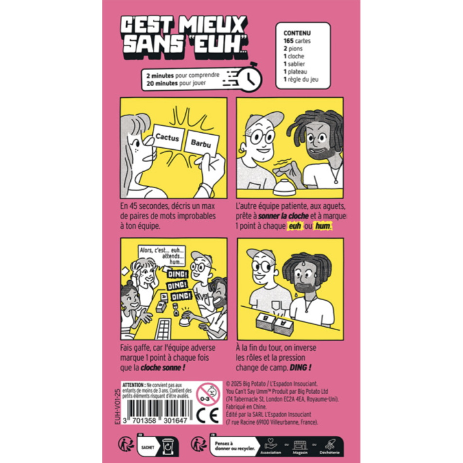 Un jeu superbement adapté en France par les créateurs de TTMC, inspiré de l’immense succès anglais ¨You Can’t say Umm¨.