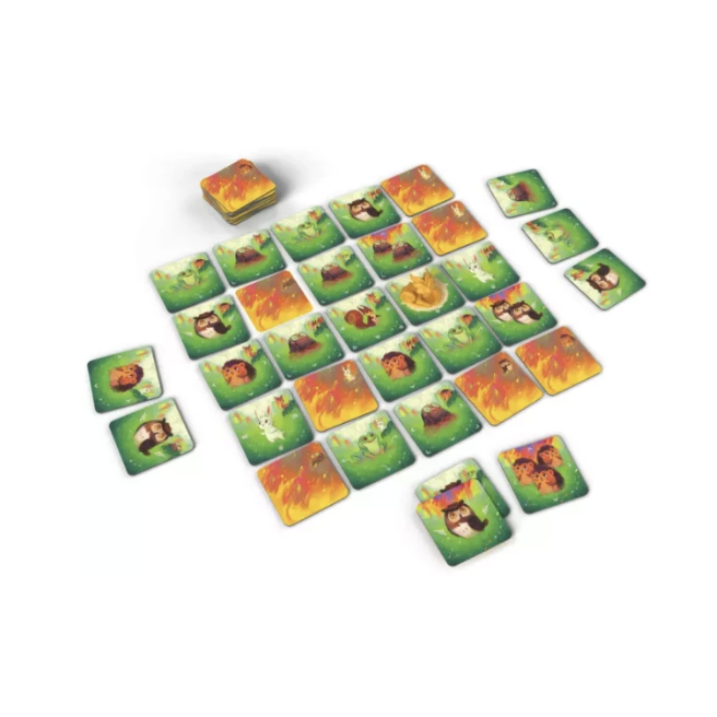 La forêt est en feu, les animaux paniquent, les arbres s’effondrent… Mais tout n’est pas perdu ! Vous incarnez Forest, l’Esprit protecteur de la forêt, et votre mission est simple : sauver un maximum d’animaux avant que les flammes n’aient tout ravagé et que la pioche soit vide. Chaque animal secouru vous rapporte des points, et c’est le joueur ou la joueuse qui en cumule le plus qui l’emporte. Il faudra faire preuve de réflexion pour guider les habitants de la forêt vers la sortie et devenir leur sauveur.