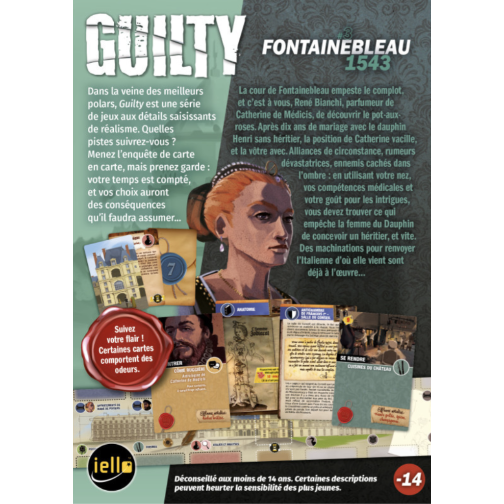 Guilty Fontainebleau est un jeu d’enquête qui se joue seul ou en mode coopératif. Dans ce jeu de société, retrouvez des scènes glaçantes de réalisme avec de multiples évènements et conséquences selon vos choix.