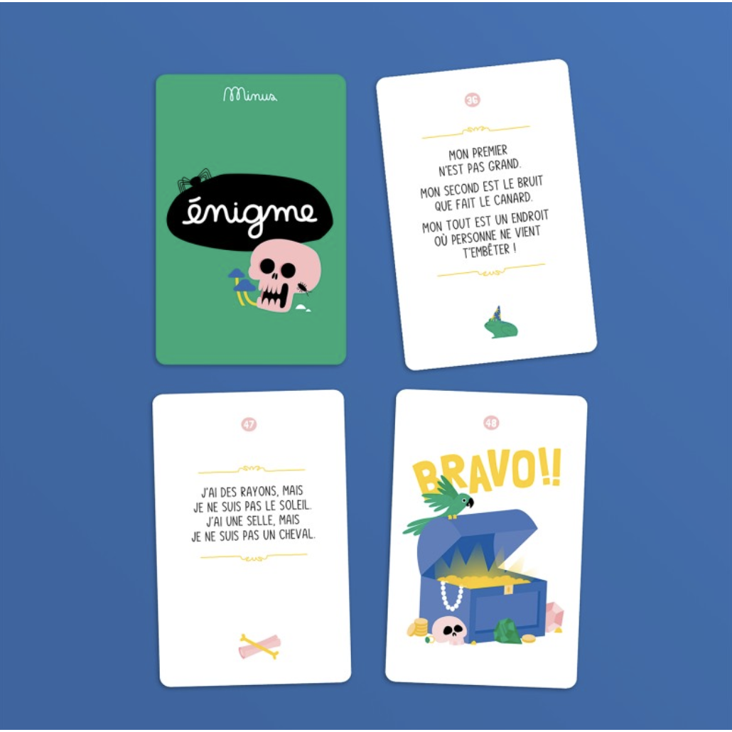 Des énigmes qui permettent au enfants de se creuser (un peu) la tête pour trouver le lieu de la prochaine énigme ! et ainsi de suite jusqu’au trésor… Vous allez voir, vous avez forcément tous ces endroits chez vous !