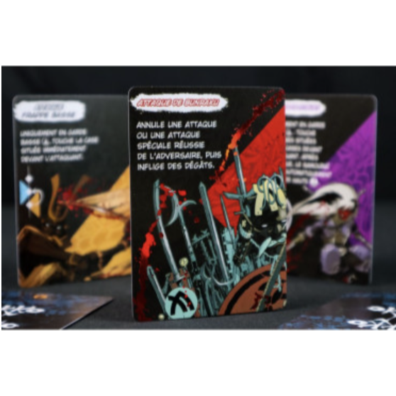 Avec les cartes, les joueurs avancent ou reculent par rapport à l’adversaire ou frappent haut ou bas, en essayant de causer des dégâts.