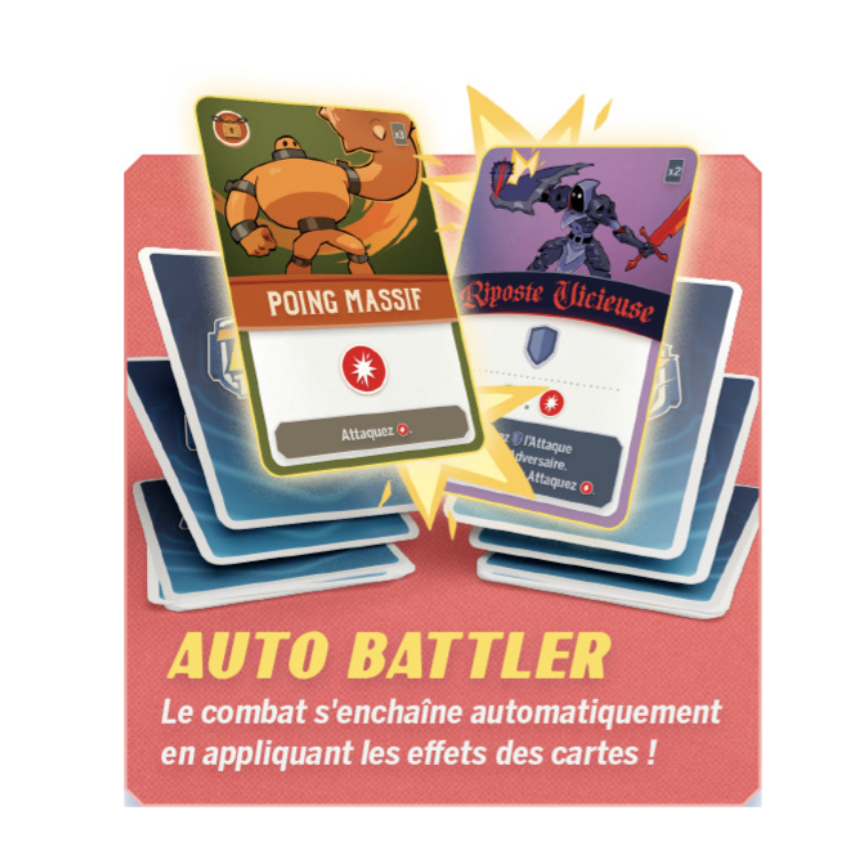 Commencez avec un deck de 2 cartes seulement. Le combat se déroule automatiquement ; dépilez vos cartes en appliquant leurs effets. Chaque fin de round est capitale !