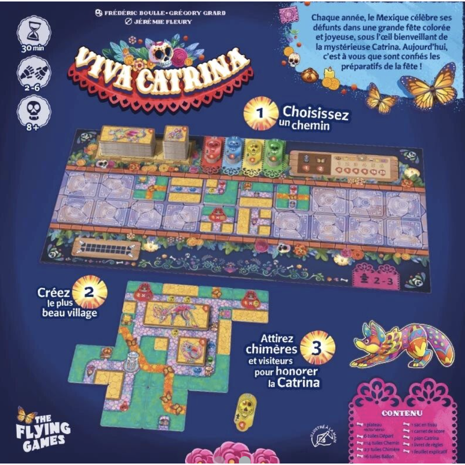 Créez le plus beau Village pour célébrer le Día de Los Muertos en collectant ballons, chimères, visiteurs et papillons à travers un astucieux placement de tuiles. Le joueur ou la joueuse ayant accumulé le plus de points de victoire l’emporte.